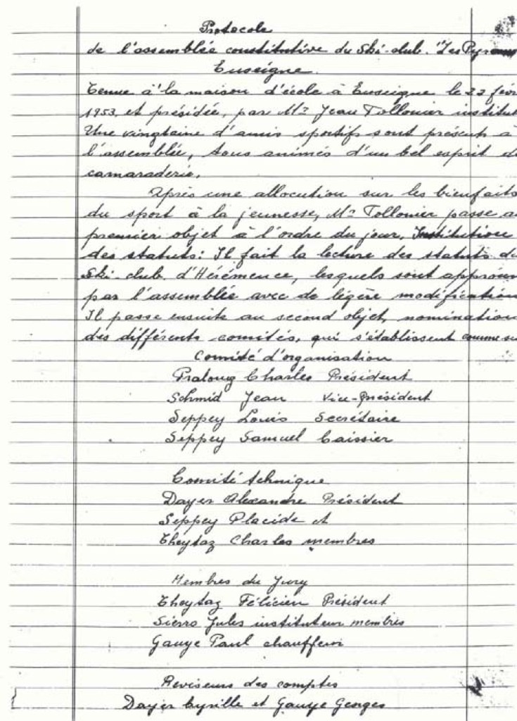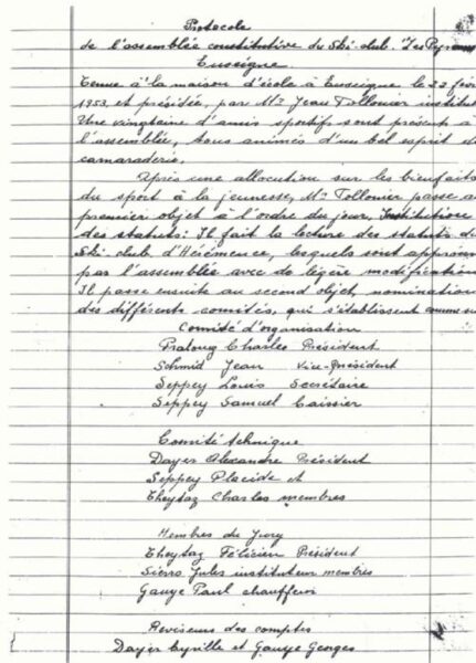Le Ski Club Les Pyramides a été fondé à Euseigne en 1953. Il avait pour but le développement et l’apprentissage du ski pour les gens du village. Au fil des ans, les activités se sont diversifiées avec l’organisation de divers concours de ski, du Cross du Bisse ainsi que de l’équipement de la Cabane des Ecoulaies. Vous trouverez ci-dessous, quelques documents en lien avec l’histoire du club.